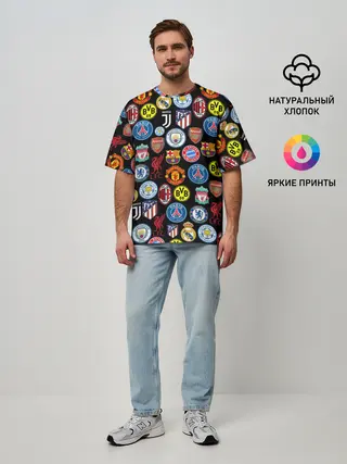 Мужская футболка оверсайз / ЛОГО ФУТБОЛЬНЫХ КОМАНД
