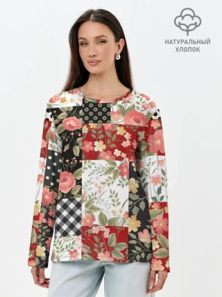 Лонгслив женский. Хлопок / Лоскутный орнамент