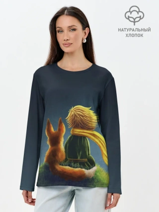 Лонгслив женский. Хлопок / Маленький принц с лисой