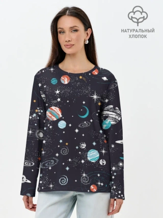 Лонгслив женский. Хлопок / Космос
