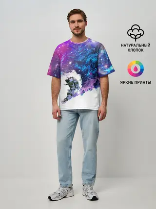 Мужская футболка оверсайз / Космический сноуборд