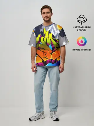 Мужская футболка оверсайз / НЕОНОВОЕ ГРАФФИТИ