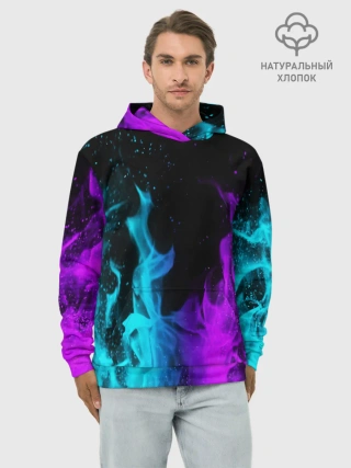 Худи мужской база хлопок / ПЛАМЯ | НЕОНОВЫЙ ОГОНЬ