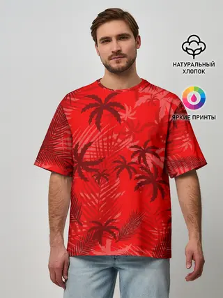 Мужская футболка оверсайз / ПАЛЬМЫ / ТРОПИКИ / ЛЕТО
