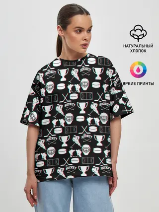 Женская футболка оверсайз / ХОККЕЙ GLITCH