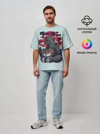 Мужская футболка оверсайз / Blue Godzilla