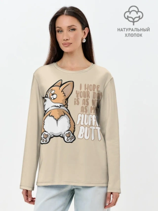 Лонгслив женский. Хлопок / Милый Корги