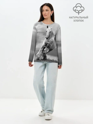 Лонгслив женский. Хлопок / Белая лошадь