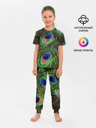 Детская пижама с брюками / Перья павлина #1