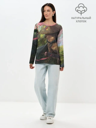Лонгслив женский. Хлопок / Собака Самурай плачет мем