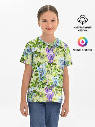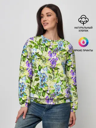Женская футболка оверсайз / Глициния на бежевом фоне