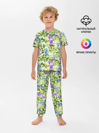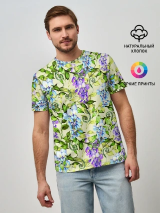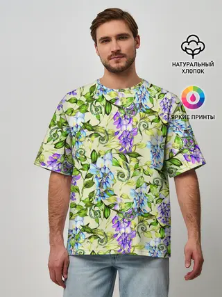 Мужская футболка оверсайз / Глициния на бежевом фоне