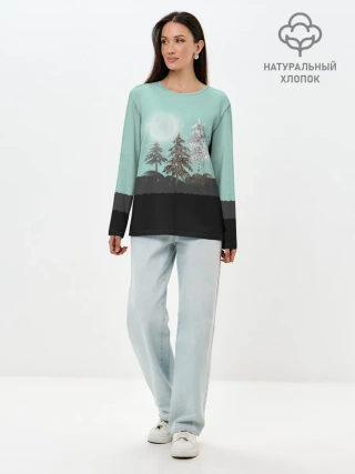 Лонгслив женский. Хлопок / Лес. Мозаичный узор