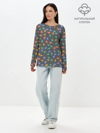 Лонгслив женский. Хлопок / Аксолотль паттерн