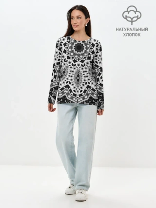 Лонгслив женский. Хлопок / Черно-белый орнамент
