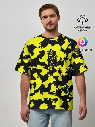 Мужская футболка оверсайз / Черно-желтый камуфляж