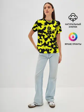 Женская базовая футболка / Черно-желтый камуфляж