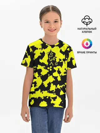 Детская базовая футболка / Черно-желтый камуфляж