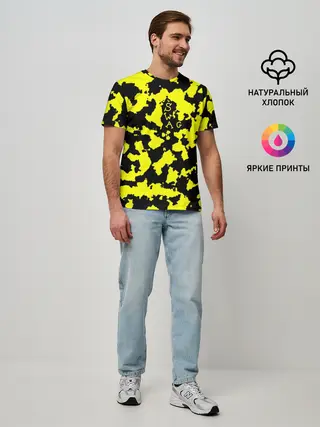 Мужская базовая футболка / Черно-желтый камуфляж