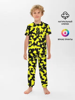 Детская пижама с брюками / Черно-желтый камуфляж