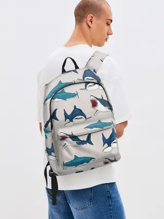 Рюкзак джинсовый / Кровожадные акулы паттерн
