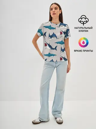 Женская футболка оверсайз / Кровожадные акулы паттерн