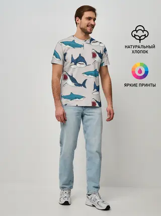 Мужская базовая футболка / Кровожадные акулы паттерн