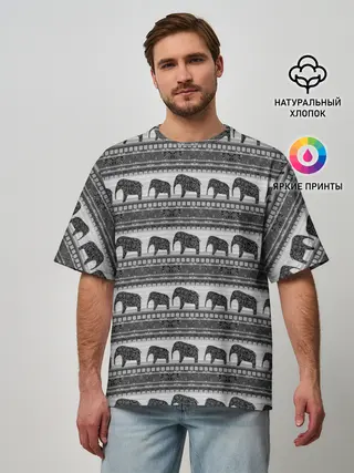 Мужская футболка оверсайз / Черно-белый узор слоны