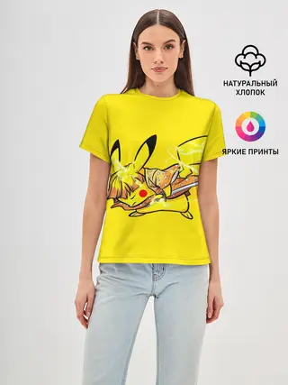 Женская базовая футболка / Пикачу Зеницу клинок демонов
