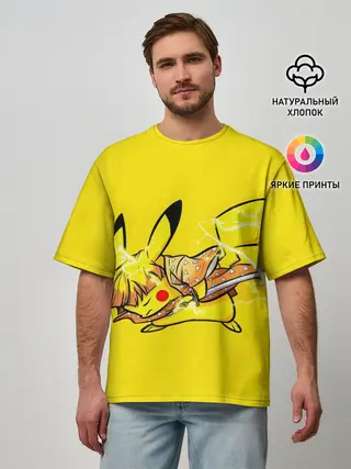 Мужская футболка оверсайз / Пикачу Зеницу клинок демонов