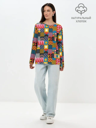 Лонгслив женский. Хлопок / Печворк. Мозаика.Настроение