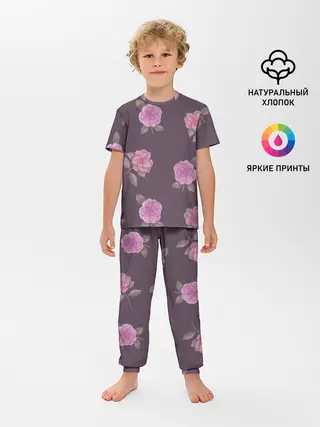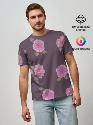 Мужская футболка оверсайз / Камелии на вишневом фоне