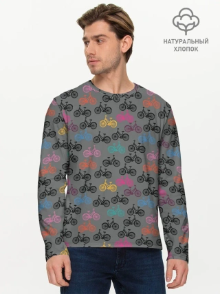 Мужской лонгслив базовый / Цветные велосипеды паттерн