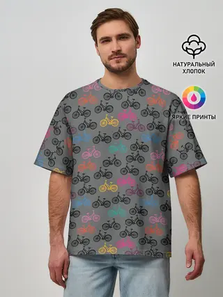 Мужская футболка оверсайз / Цветные велосипеды паттерн