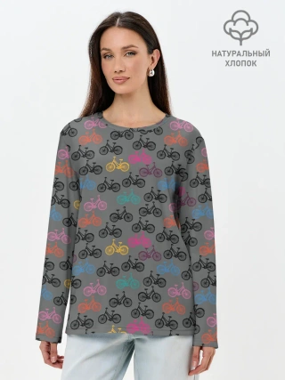 Лонгслив женский. Хлопок / Цветные велосипеды паттерн