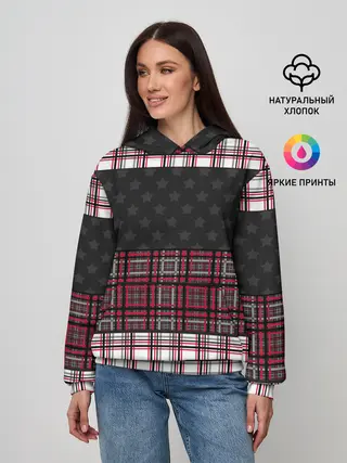 Женское худи / Комбинированный красно-серый
