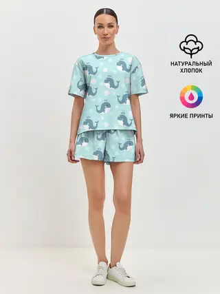 Рюкзак детский / Нарвал, киты, касатка паттерн