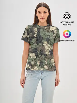 Женская футболка оверсайз / Камуфляж из матрёшек