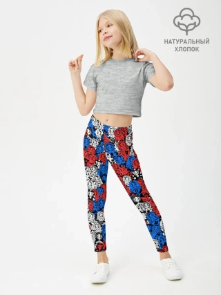 Леггинсы для девочки / Бело-сине-красные матрёшки