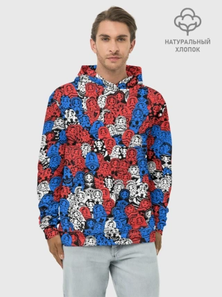 Худи мужской база хлопок / Бело-сине-красные матрёшки