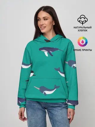 Женский свитшот / Нарвал, киты, касатка паттерн