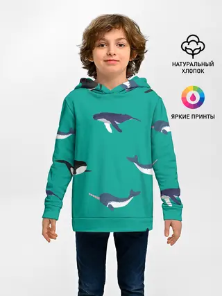 Детский лонгслив / Нарвал, киты, касатка паттерн