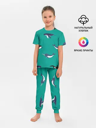 Детская пижама с брюками / Нарвал, киты, касатка паттерн
