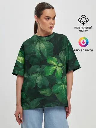 Женская футболка оверсайз / Тропическая листва | Тропики