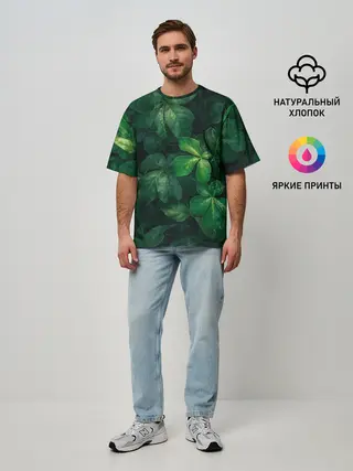Мужская футболка оверсайз / Тропическая листва | Тропики