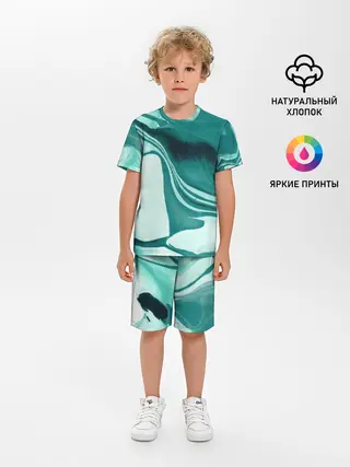 Детская пижама с шортами / красочный зелёный развод