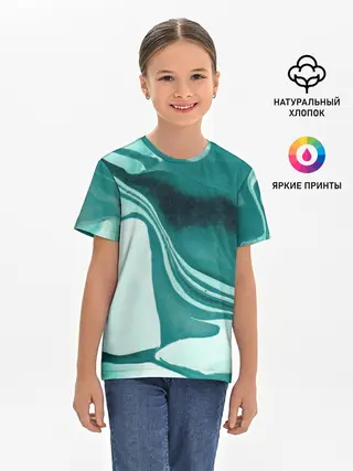 Детская базовая футболка / красочный зелёный развод