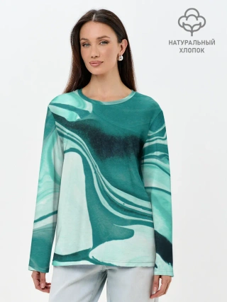 Лонгслив женский. Хлопок / красочный зелёный развод