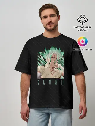 Мужская футболка оверсайз / Сенку Ишигами в квадрате