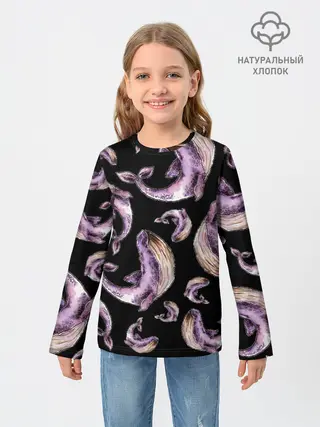 Детский лонгслив / Лиловые киты